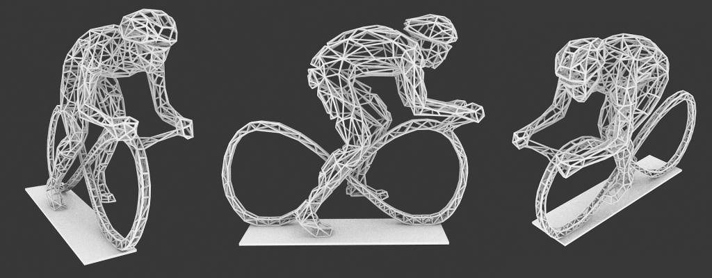 It took me around 12 hours, including the changes made with feedback. First I made the models as any other, closed surface, made a quick rig to pose it, and then played with Blender’s modifiers (decimate, wireframe, remesh, subsurface) to get my result while tweaking it and cleaning up. Lots of cleaning because the wires not always behaved like you would expect, they would get super thin in some parts so I would need to make a cylinder, superpose it and then use booleans, which also not always behave as you expect with high-poly models.