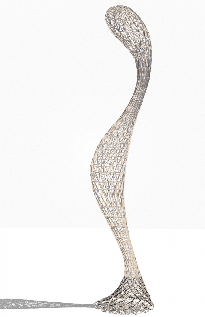 The only software I used was Blender. For the real-scale structure to be made I sent a file with the wires as curves (no mesh), the printed prototype was made with the model I uploaded to Sketchfab:
