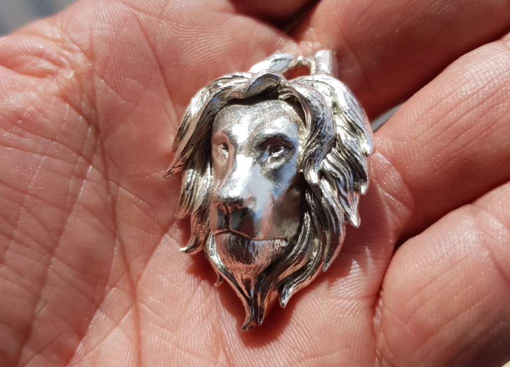 This lion was made following another of my clients’ direction. I modelled it using both Blender and Z-brush, then it was 3D printed to make the cast and it’s now available to buy in gold, gold plate (on silver), silver, and brass.