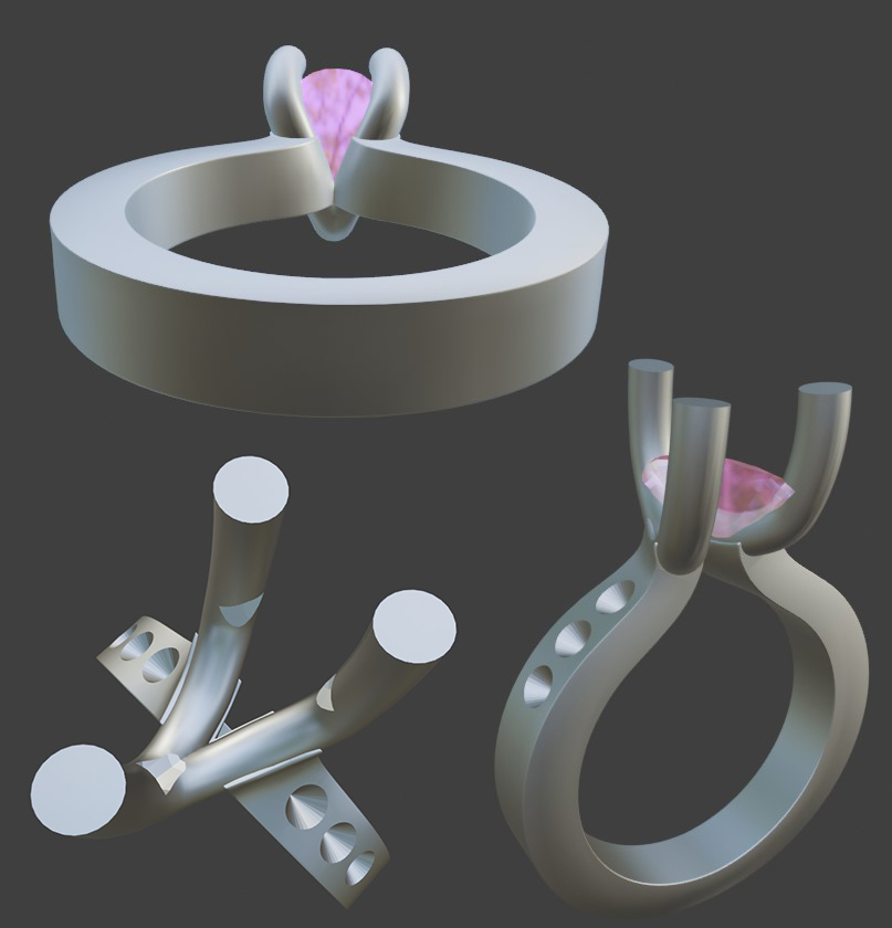For these rings I worked with the jeweller to be able to provide a clasp for the gem that then he worked with to secure it in place.