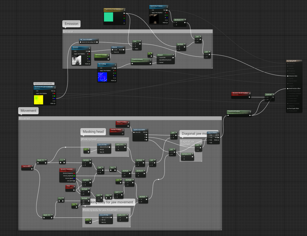 The movement of the skull itself is all made in the shader, there’s no bones, it’s a static mesh:
