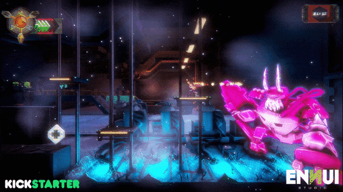 The two bottom characters were actually made for a game jam but since they fit the universe and they were already made they were incorporated to the game later on. One boss that didn’t make it through was a mecha boar, I modelled and rigged it in Blender, it has pistons and is really cool so I’ll show you (right image).